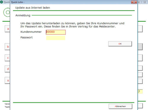 3. Nach erneuter Nachfrage zum Laden des Updates halten Sie bitte Ihre Kundennummer und Ihr Passwort bereit